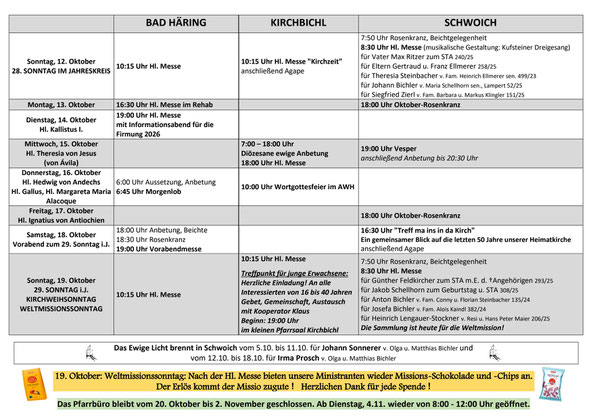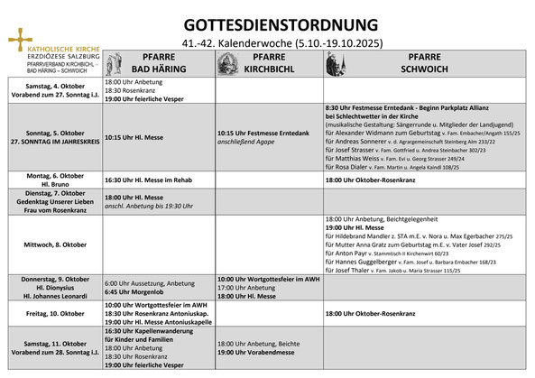Die aktuelle Gottesdienstordnung für den Pfarrverband